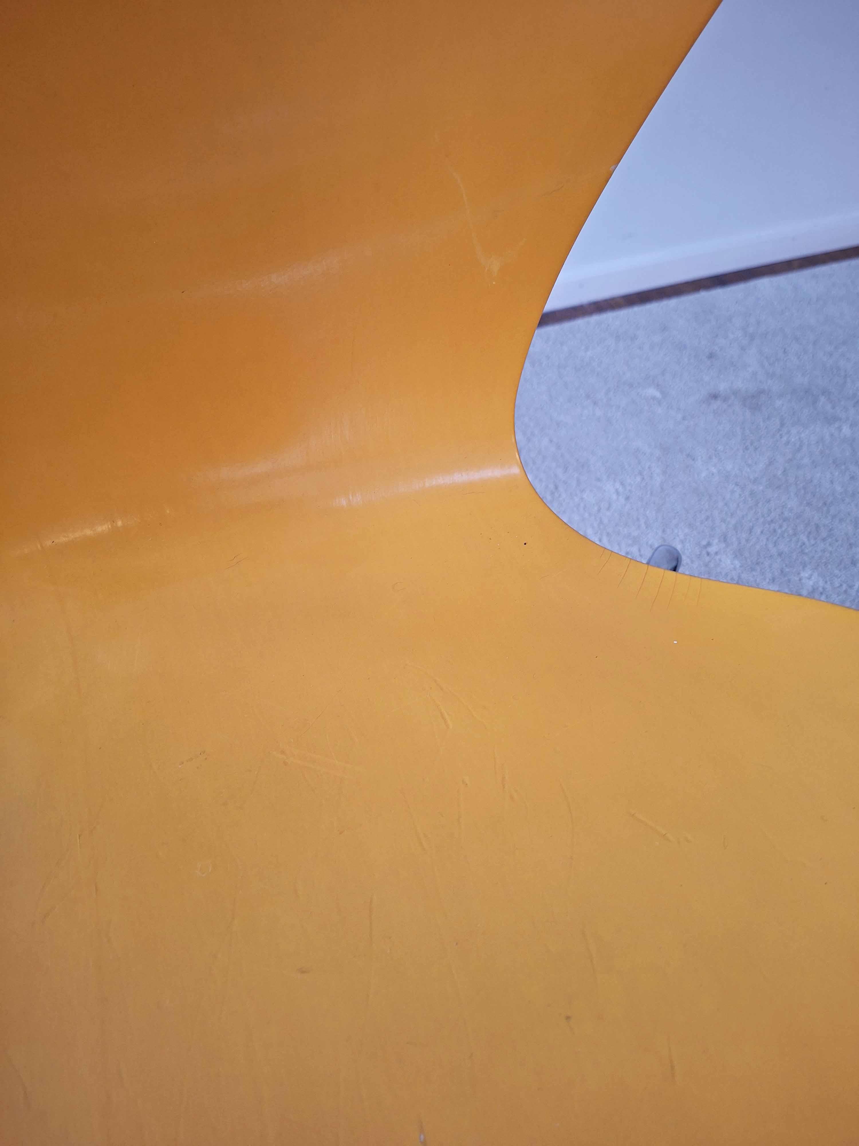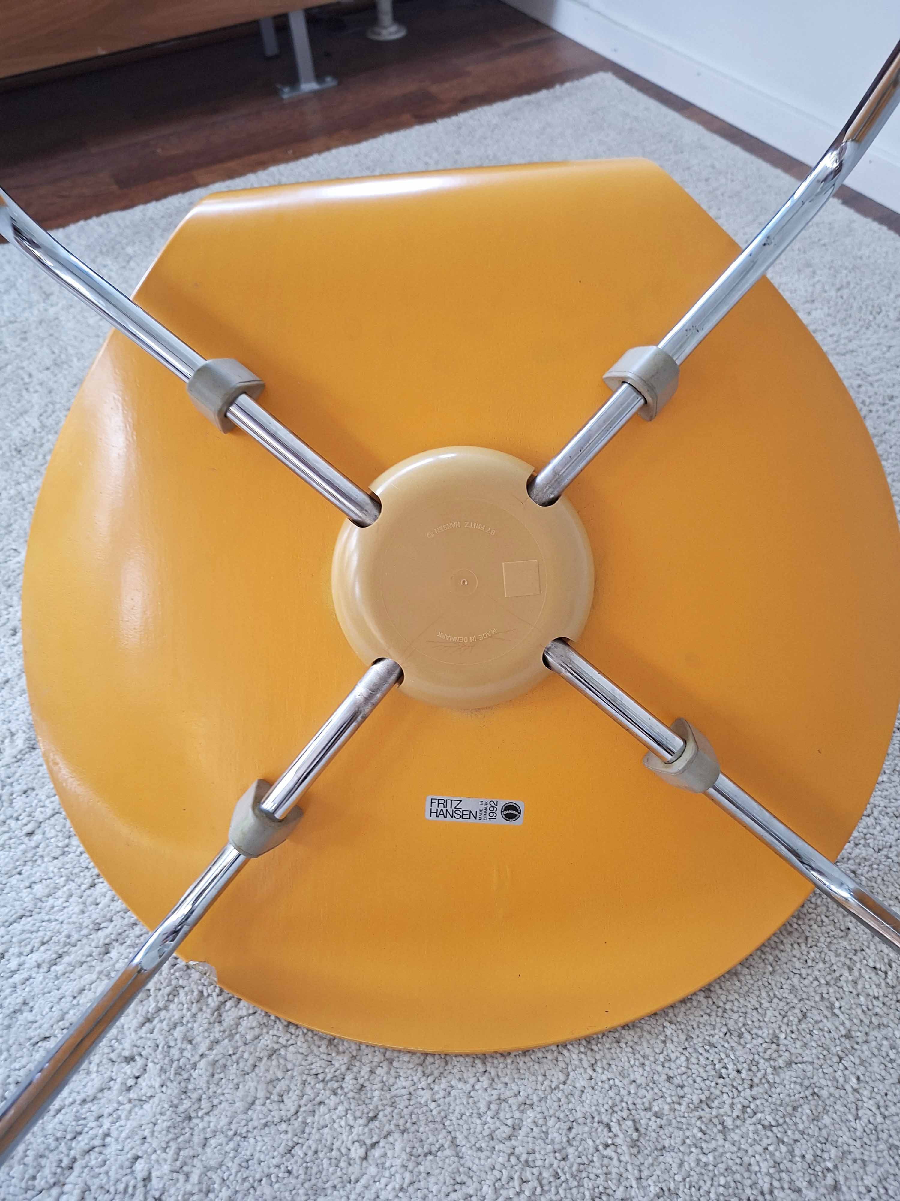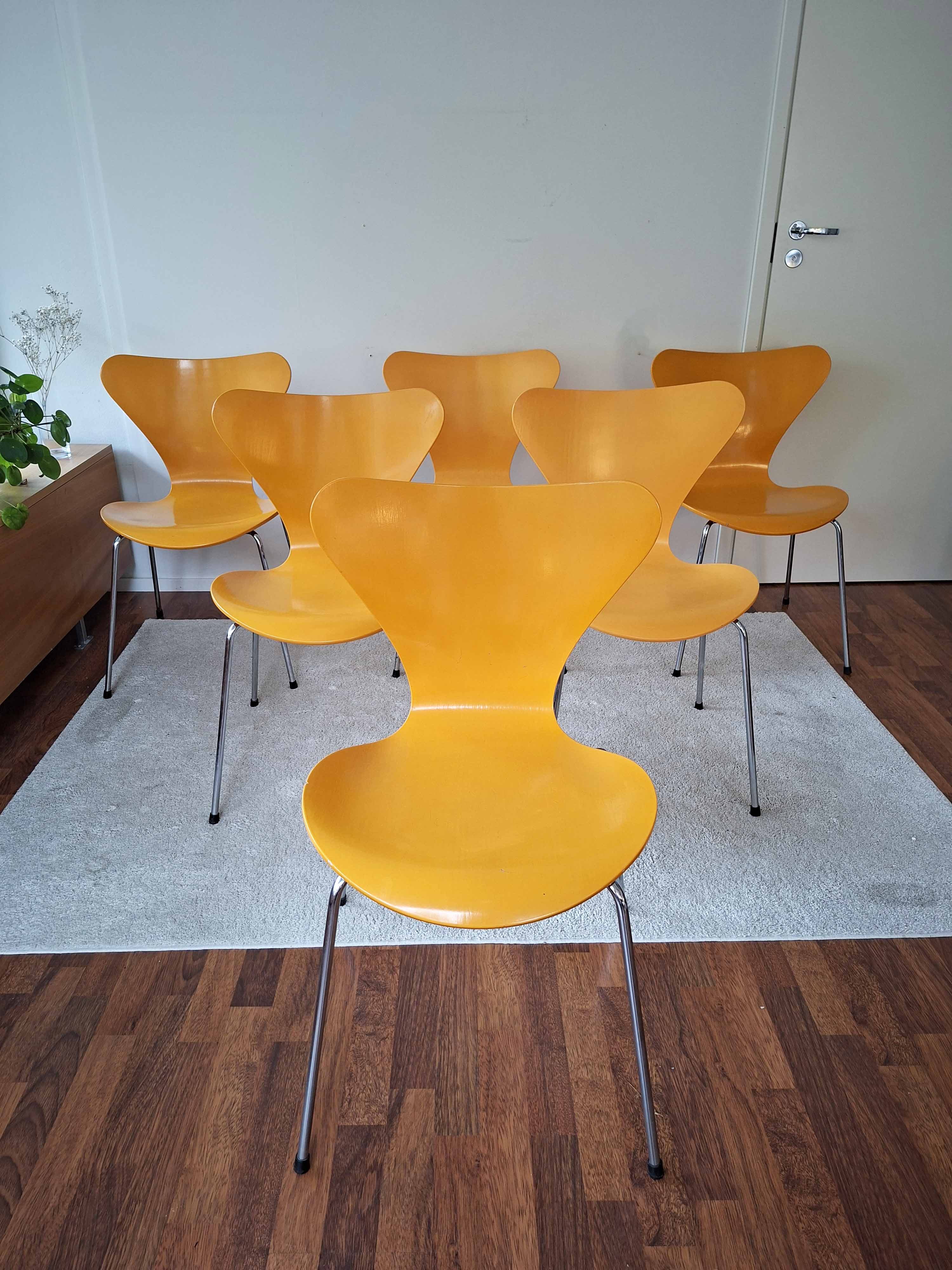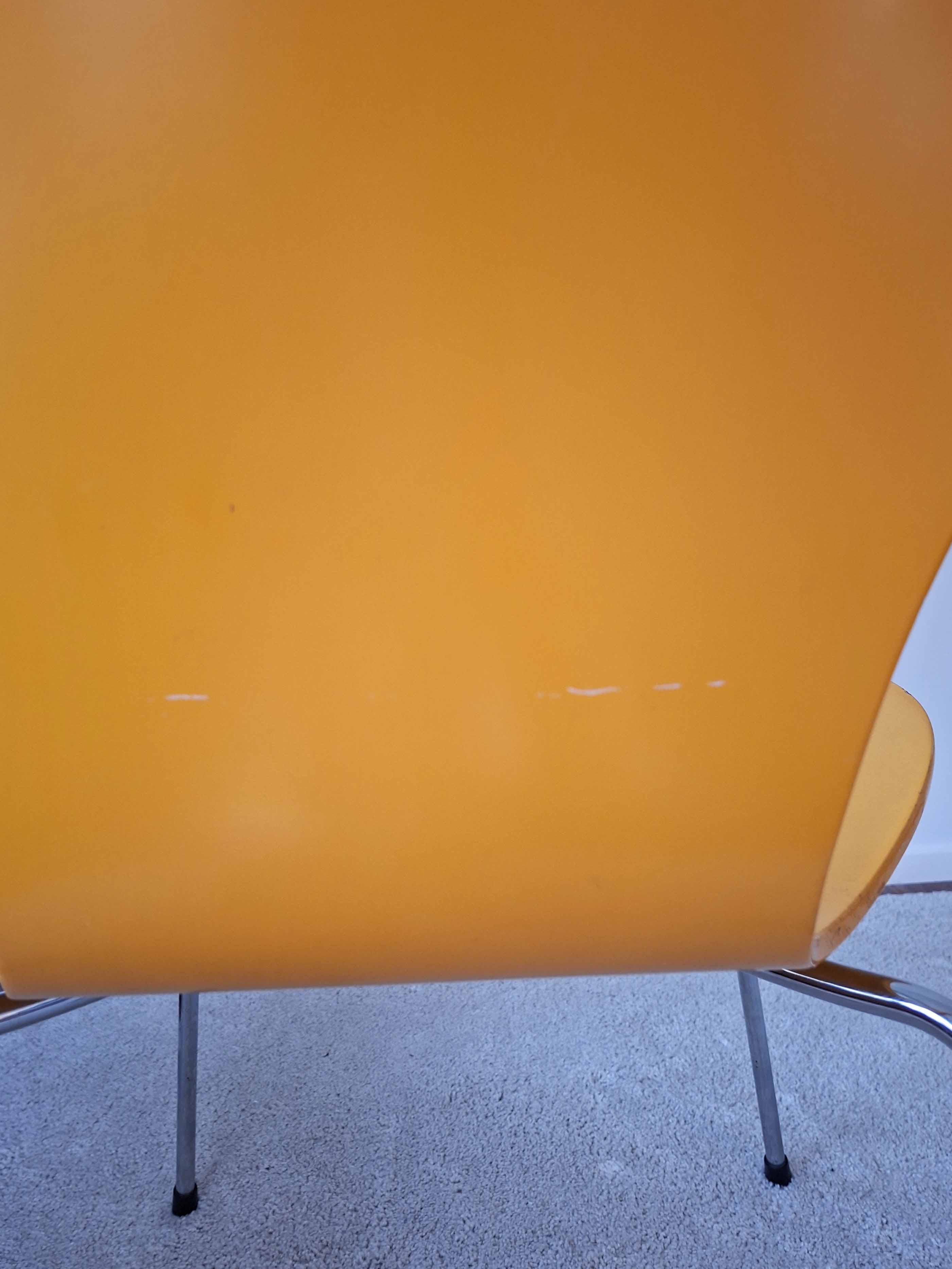 Arne Jacobsenin vuonna 1955 suunnittelema SERIES 7™, eli tuttavallisemmin ”Seiska -tuoli” kauniin keltaisessa värissä. Tuoleja on varastossa yhteensä 27 kappaletta, joten tässä on hieno mahdollisuus myös isomman ryhmän hankintaan.