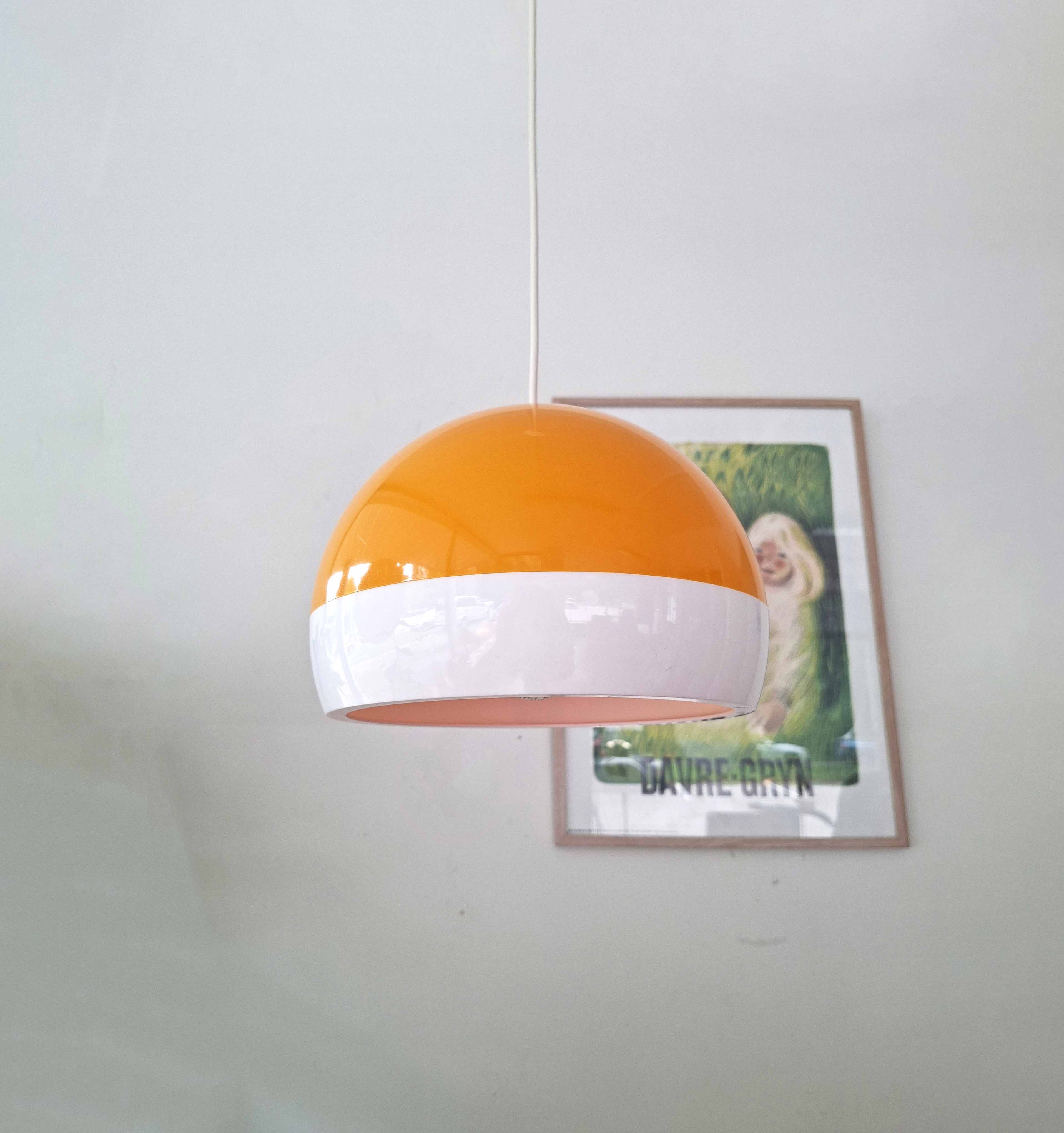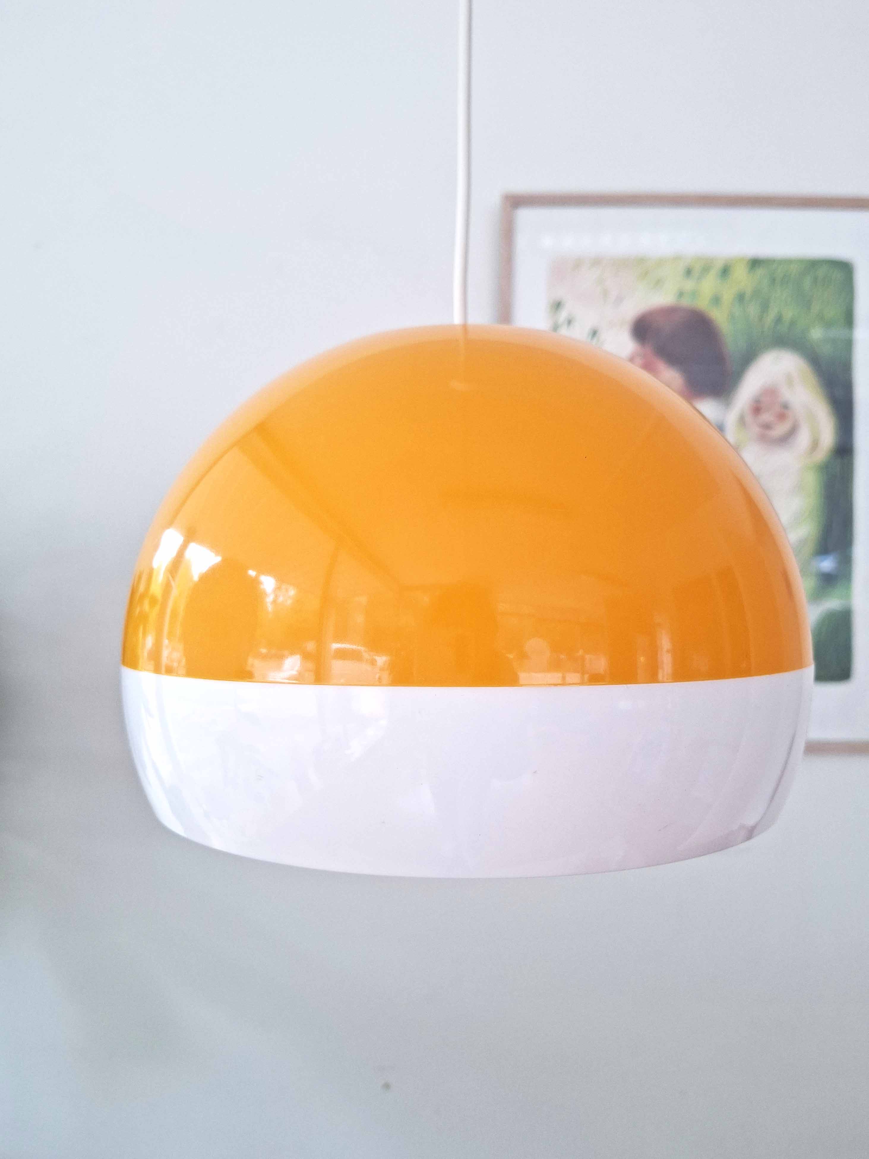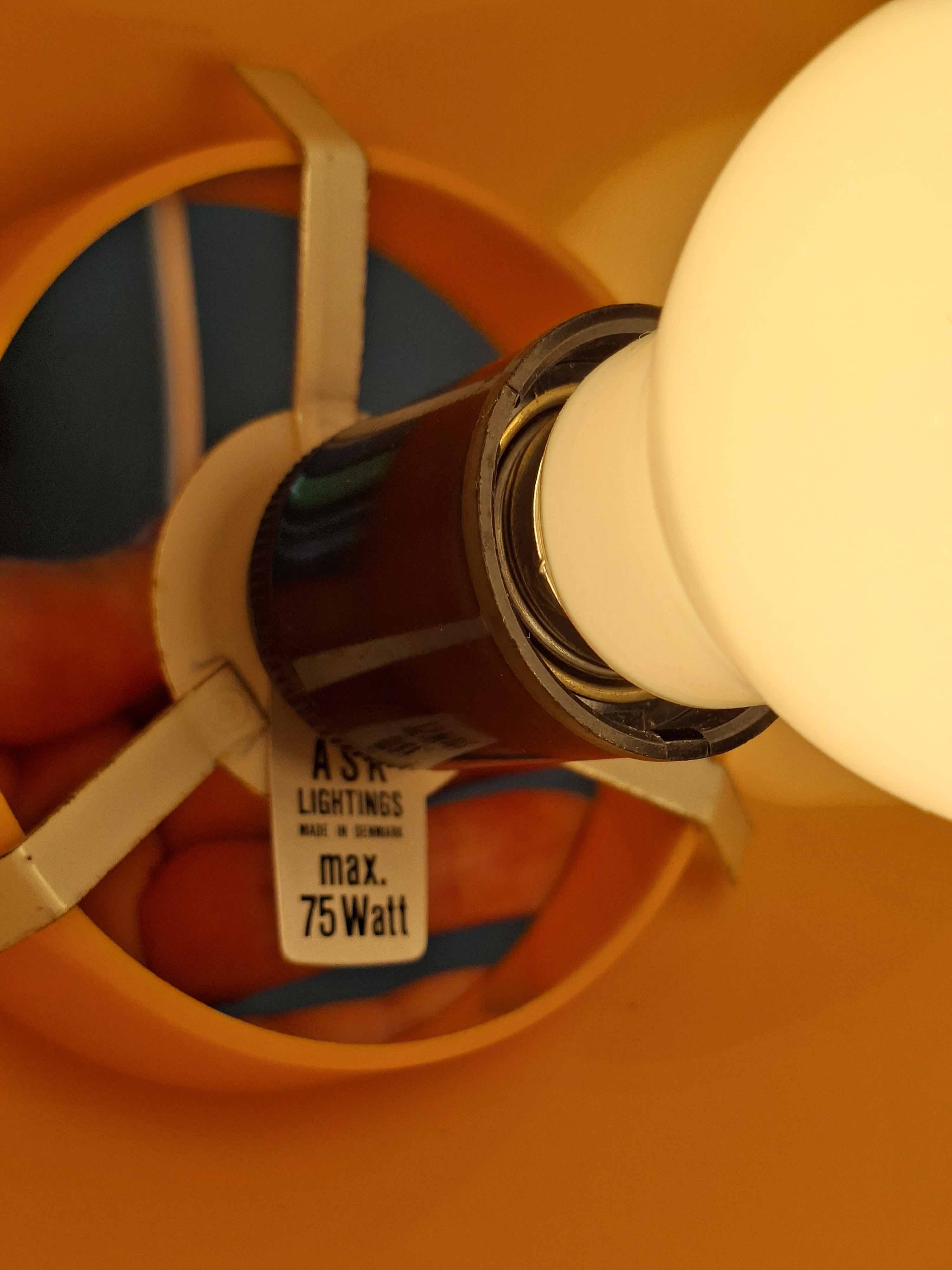 Tanskalaisen ASK Belysningin 1970 -luvulla valmistama valko-keltainen riippuvalaisin. Valaisin on todennäköisesti Bent Karlbyn suunnittelema.
