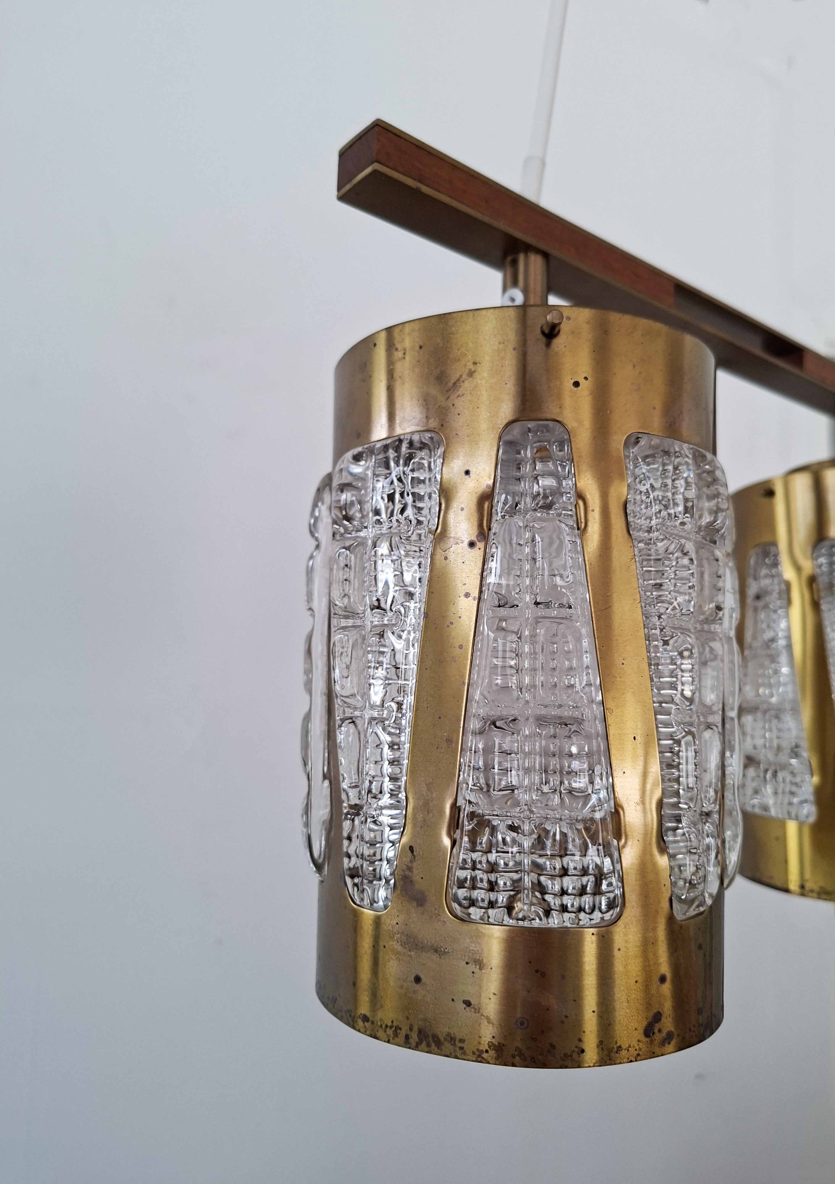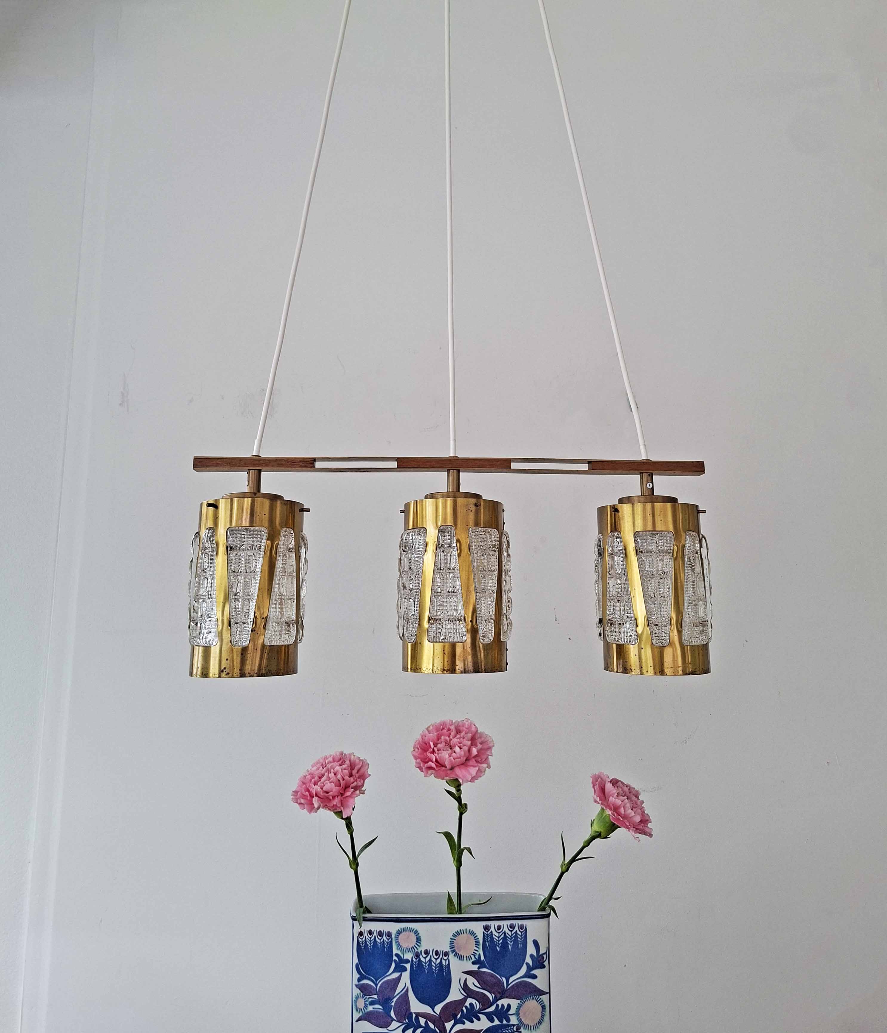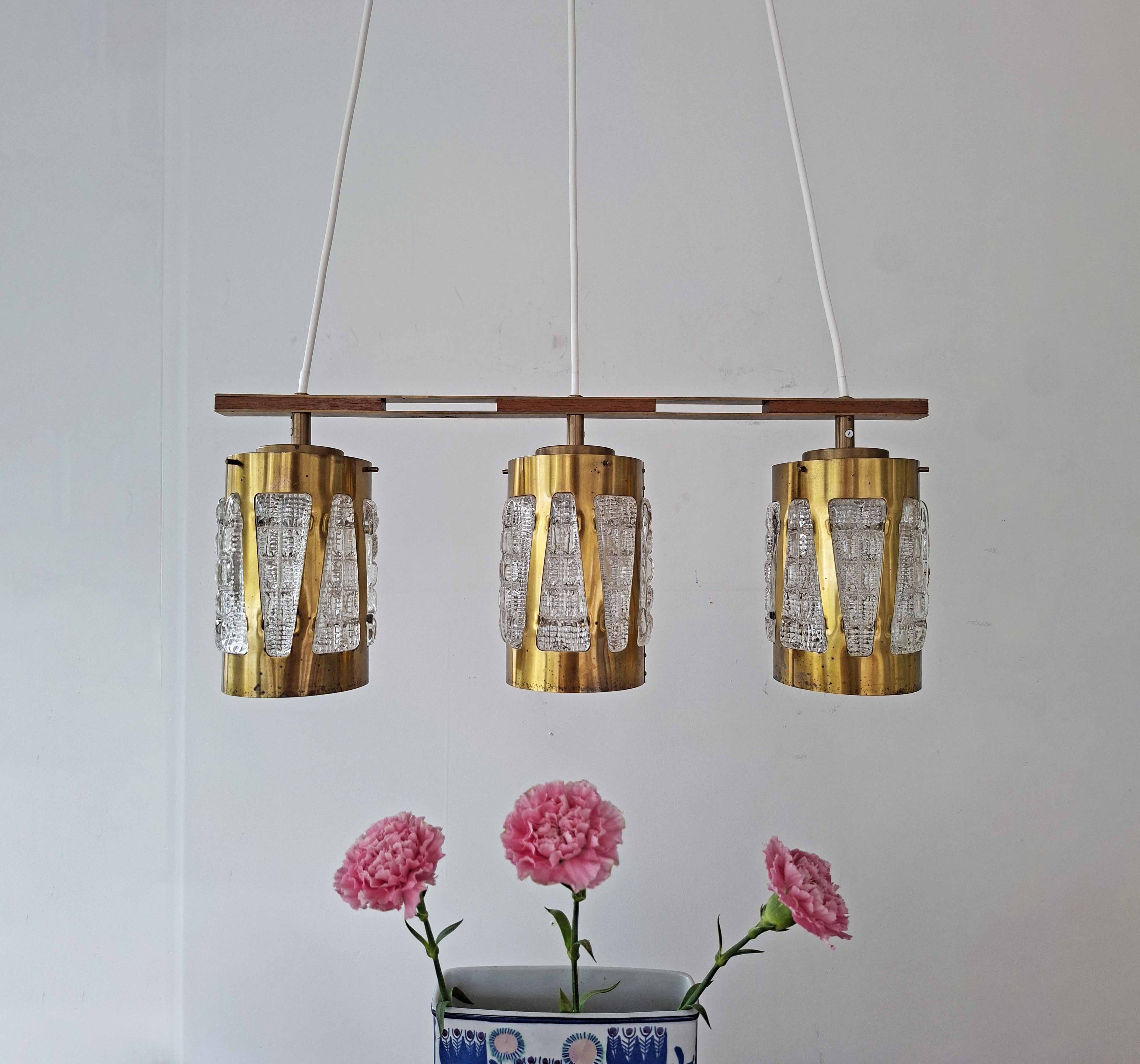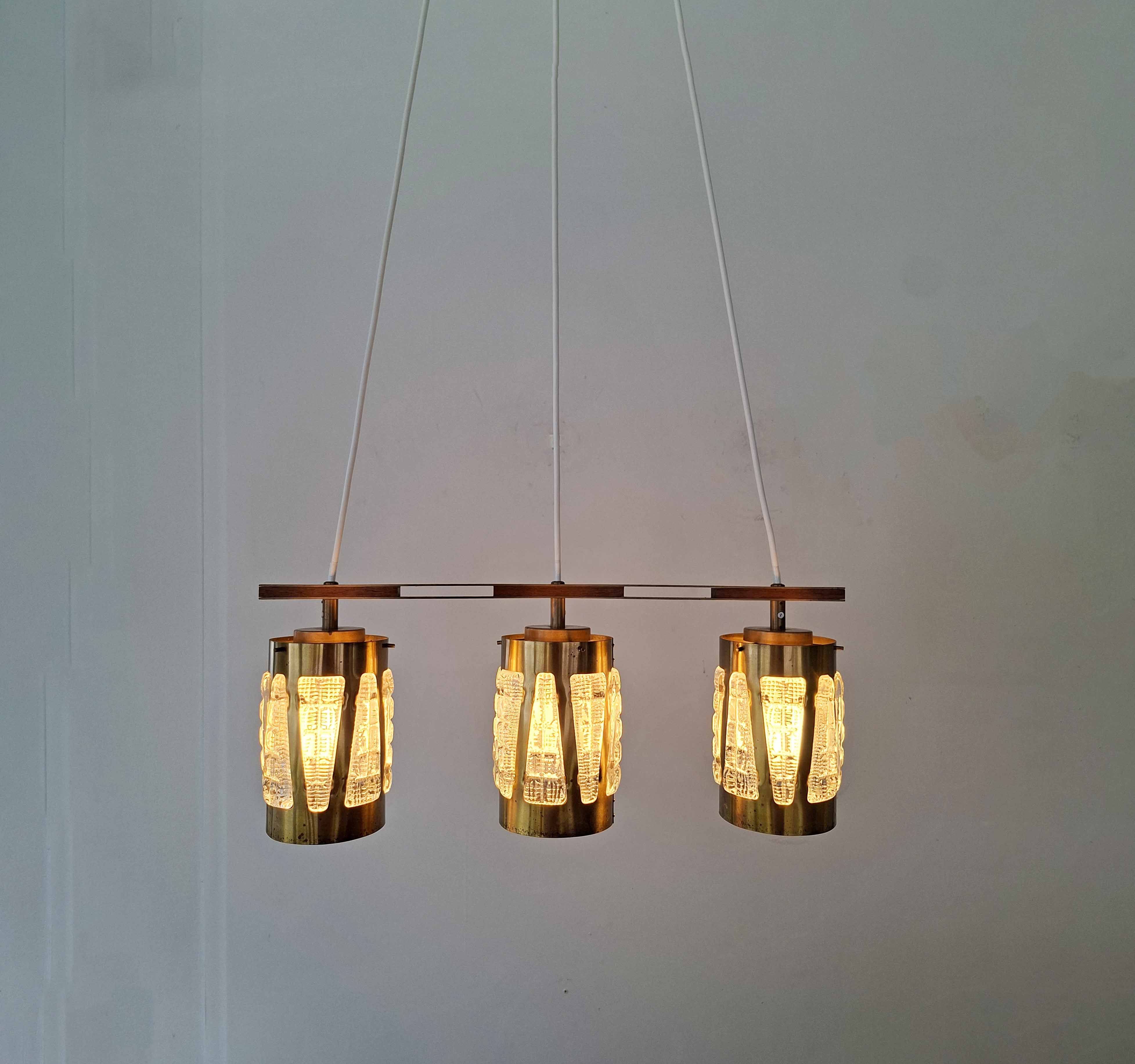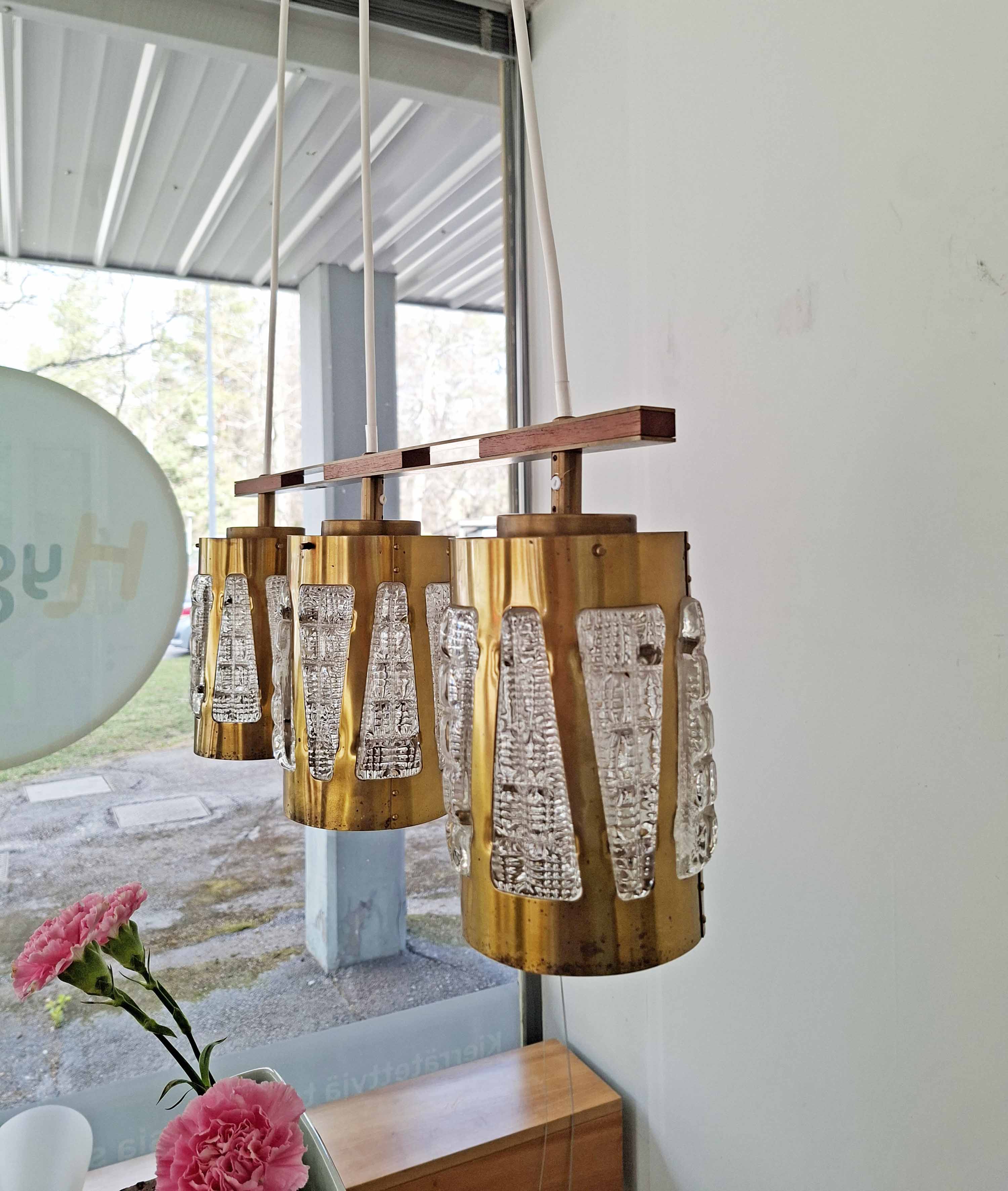 Kolmekupuinen kristalli-messinki kattovalaisin 1970-luvulta