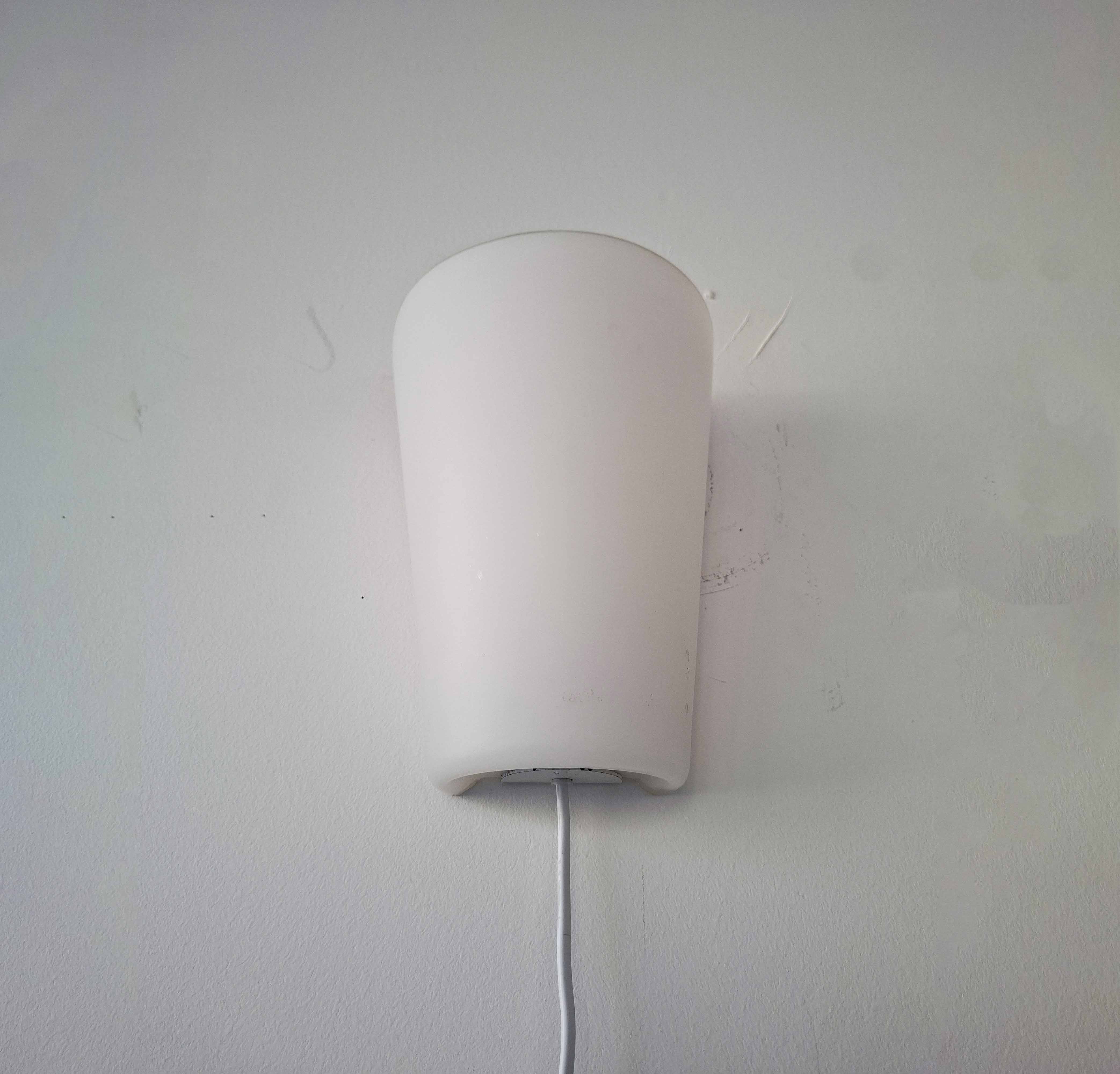 Valaisin on säilynyt iästään huolimatta oikein hyvässä kunnossa. Tyylikäs ja rauhoittava valaisin esimerkiksi makuuhuoneeseen, eteiseen tai porraskäytävään.