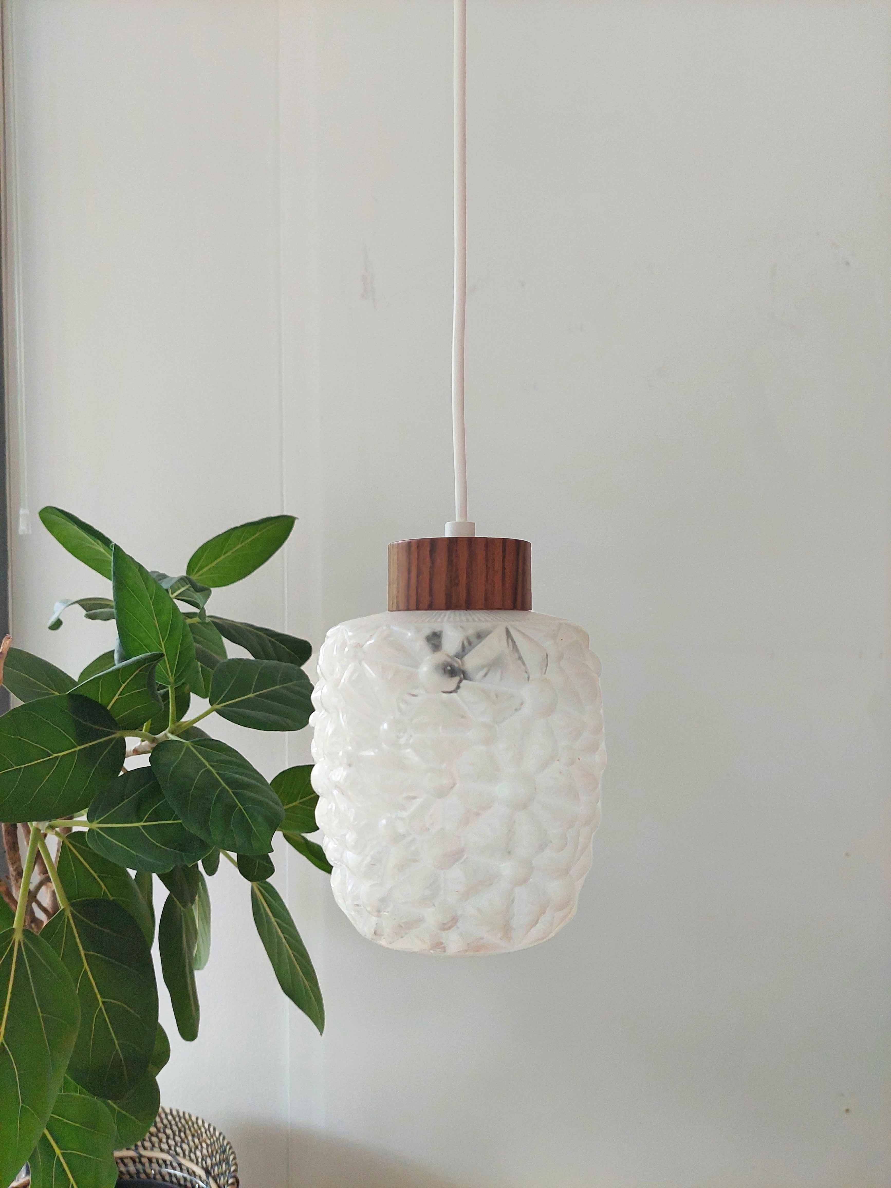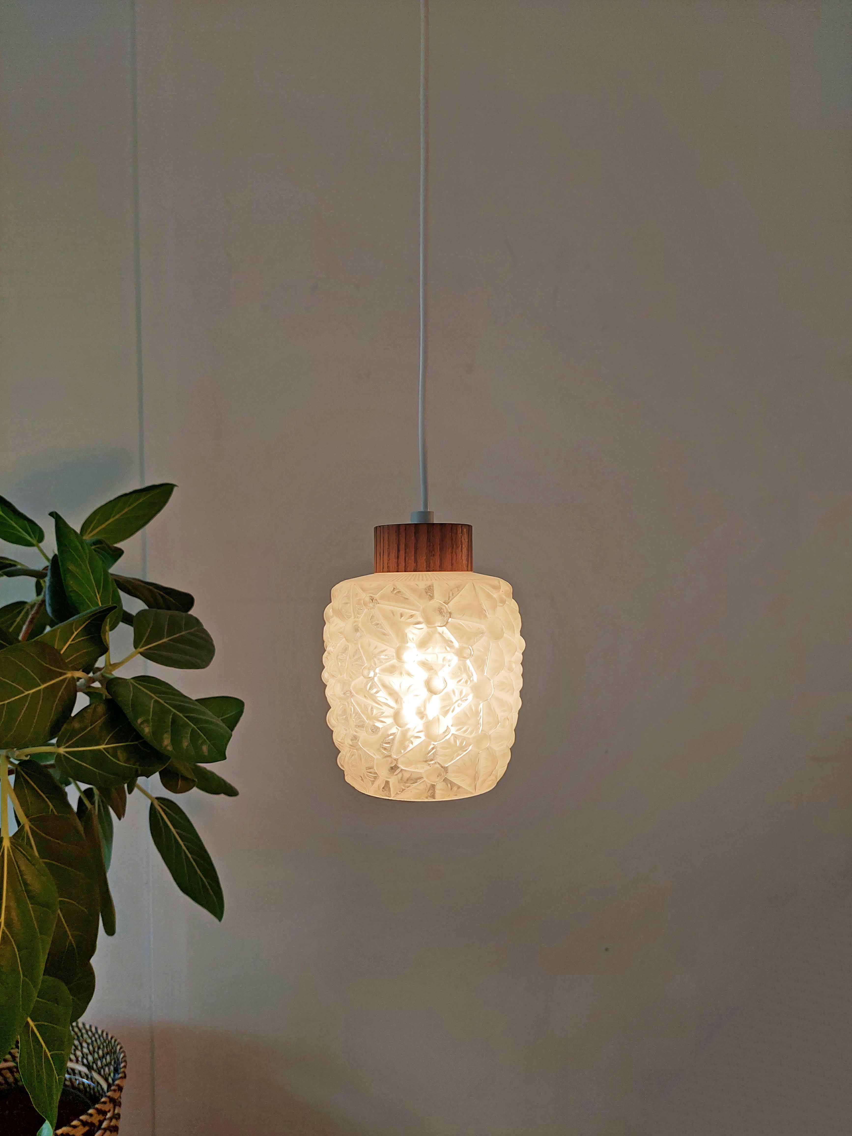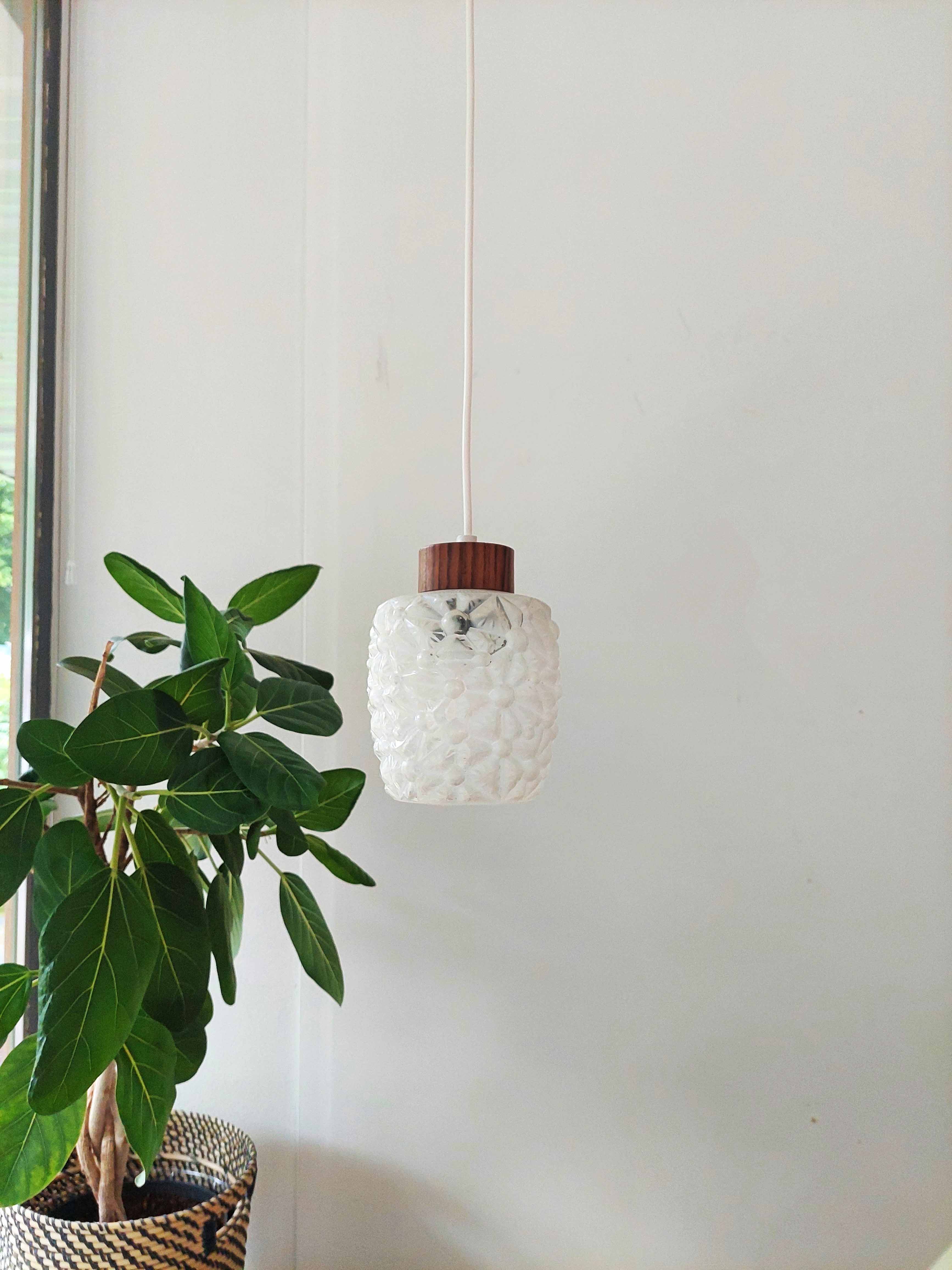Tanskassa 1960 -luvulla valmistettu lasinen riippuvalaisin.