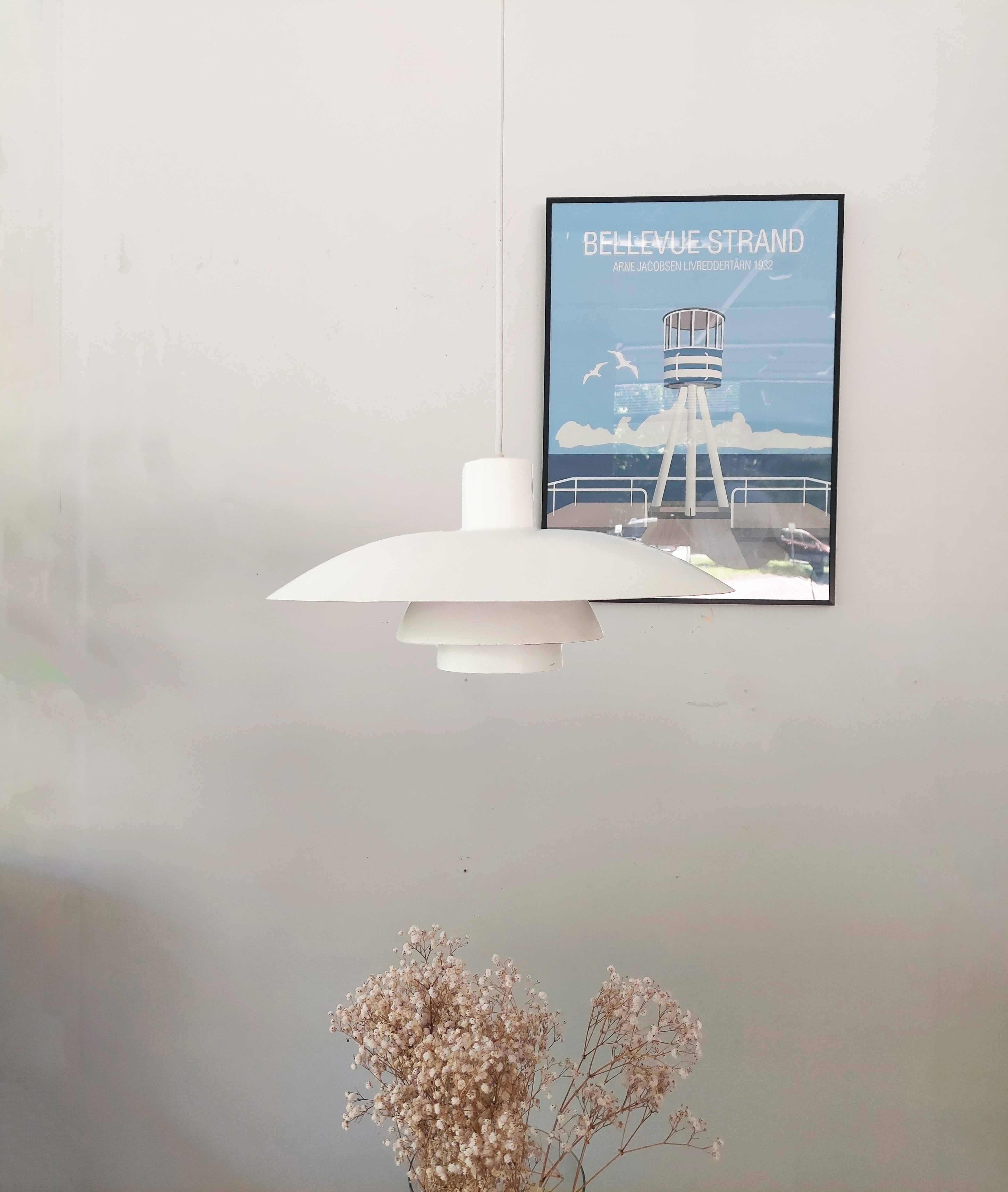 PH4/3 -riippuvalaisin on ikuinen designklassikko, joka sopii erinomaisesti esimerkiksi ruoka- tai sohvapöydän ylle. Tämä valikoimamme upea vintage-yksilö on valmistettu 1970 -luvulla. Valaisin on ikäisekseen erittäin hyvässä kunnossa.