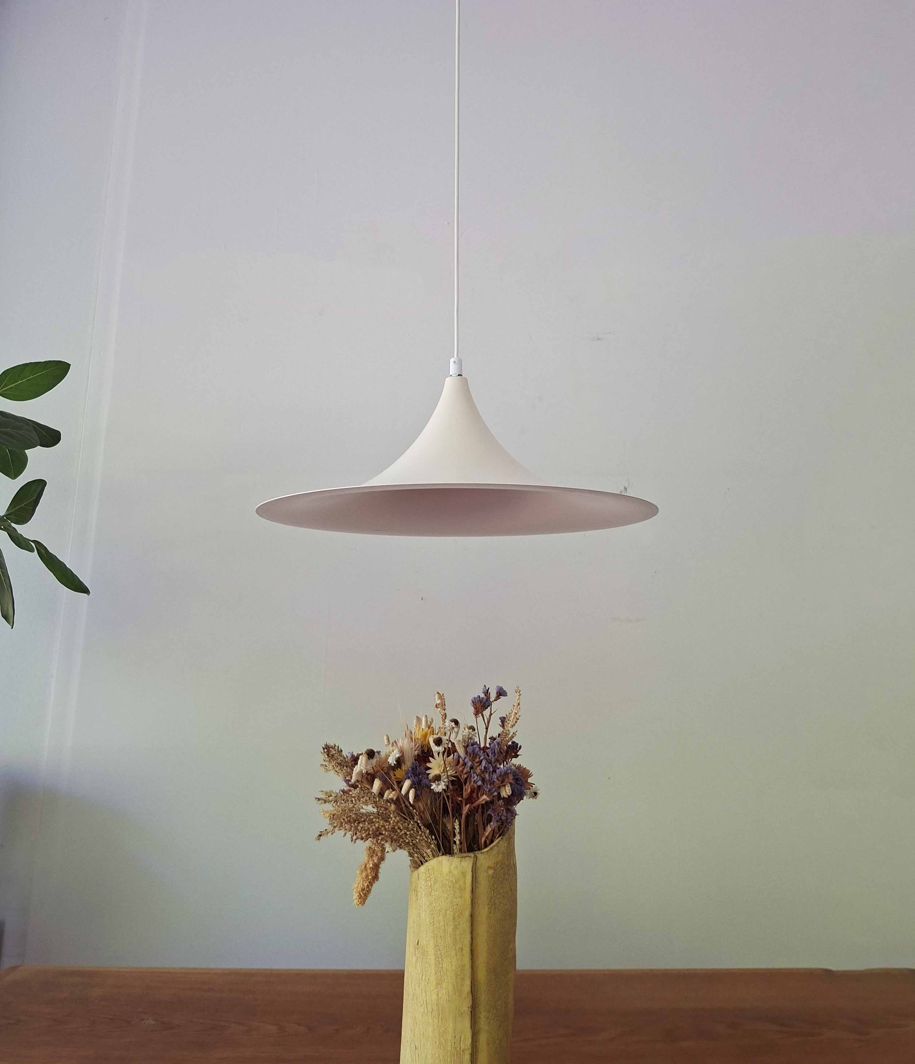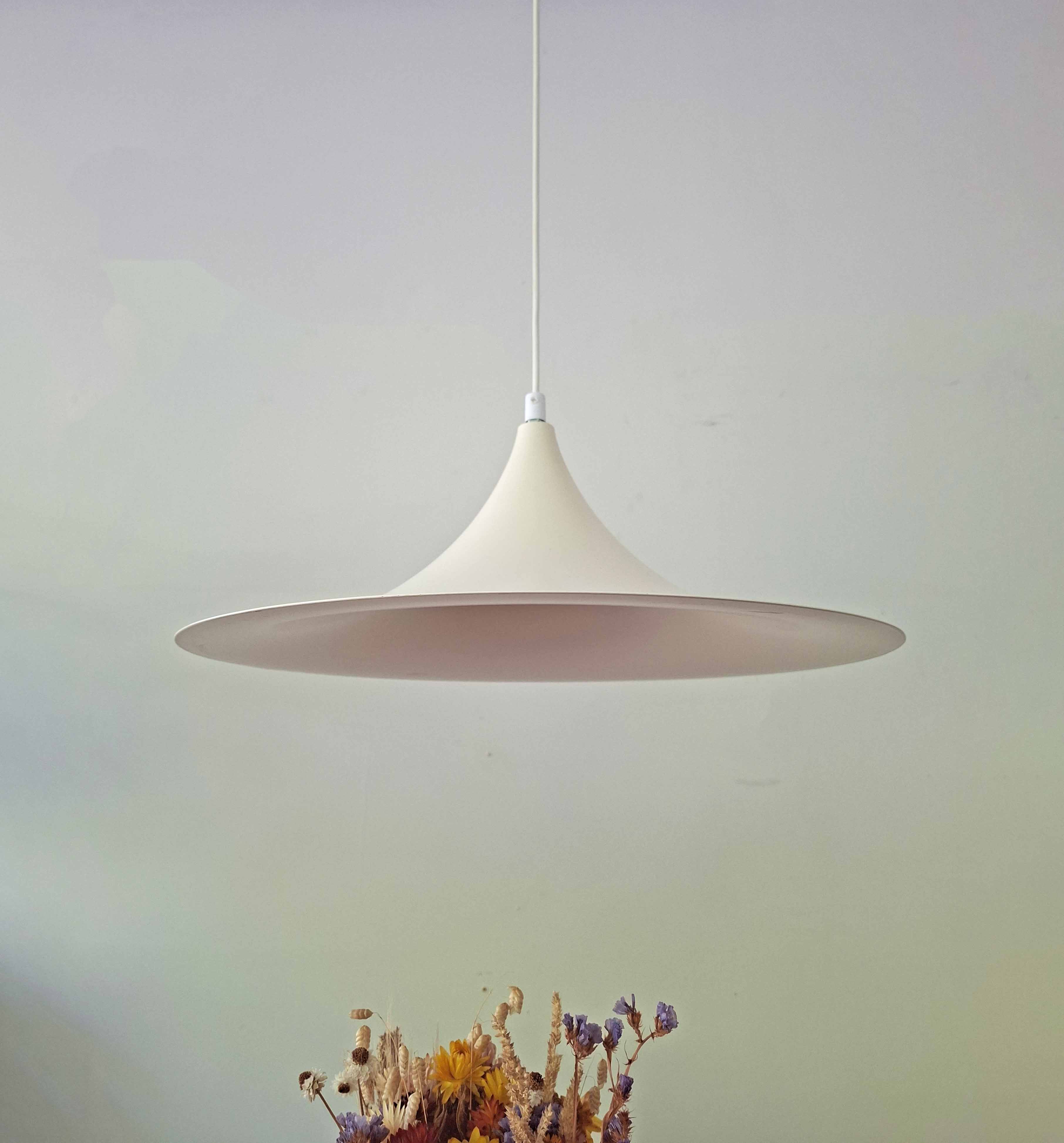 Suuri tanskalainen trumpettivalaisin 48 cm halkaisijalla. Valaisin on valmistettu 1960- tai 1970 -luvulla.